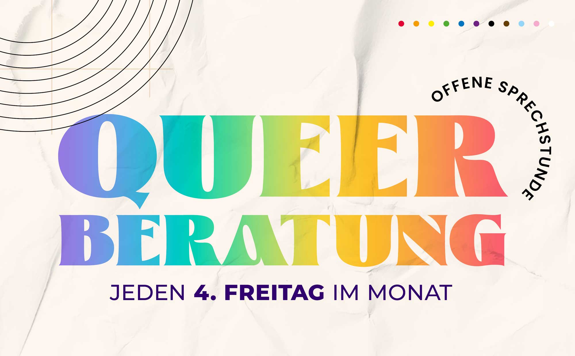 Die Queer Beratung findet jeden vierten Freitag im Monat von 19 - 21 Uhr bei