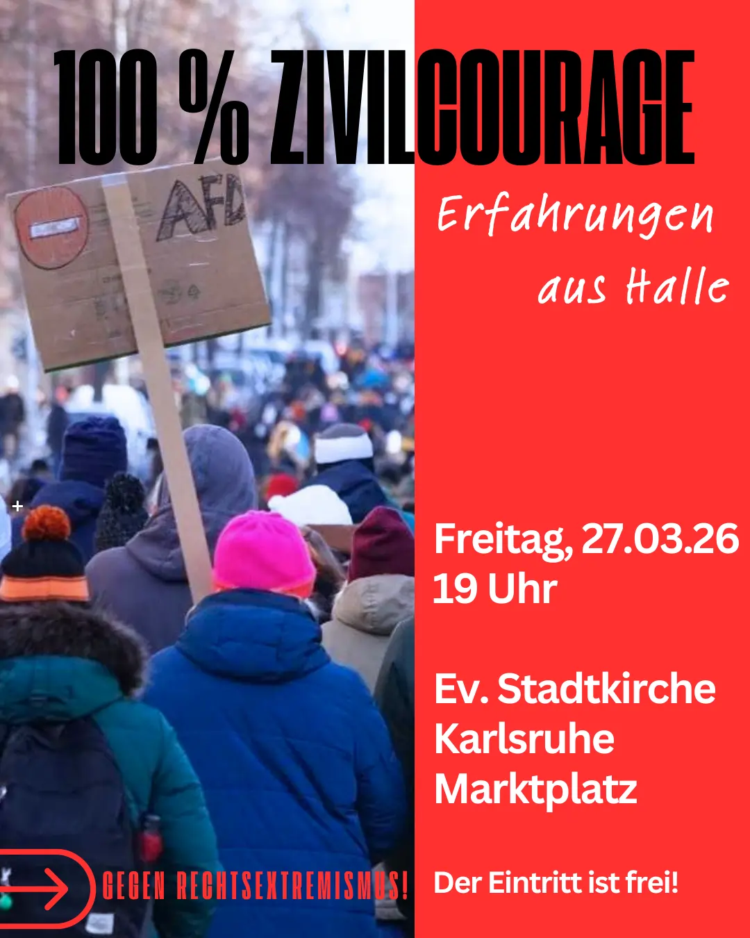 In unserer Veranstaltung möchten wir über positive Erlebnisse und hoffnungsvolle Beispiele aus unserer Partnerstadt Halle (Saale) berichten und über Karlsruher Perspektiven und Möglichkeiten von gemeinsamem Engagement ins Gespräch kommen.