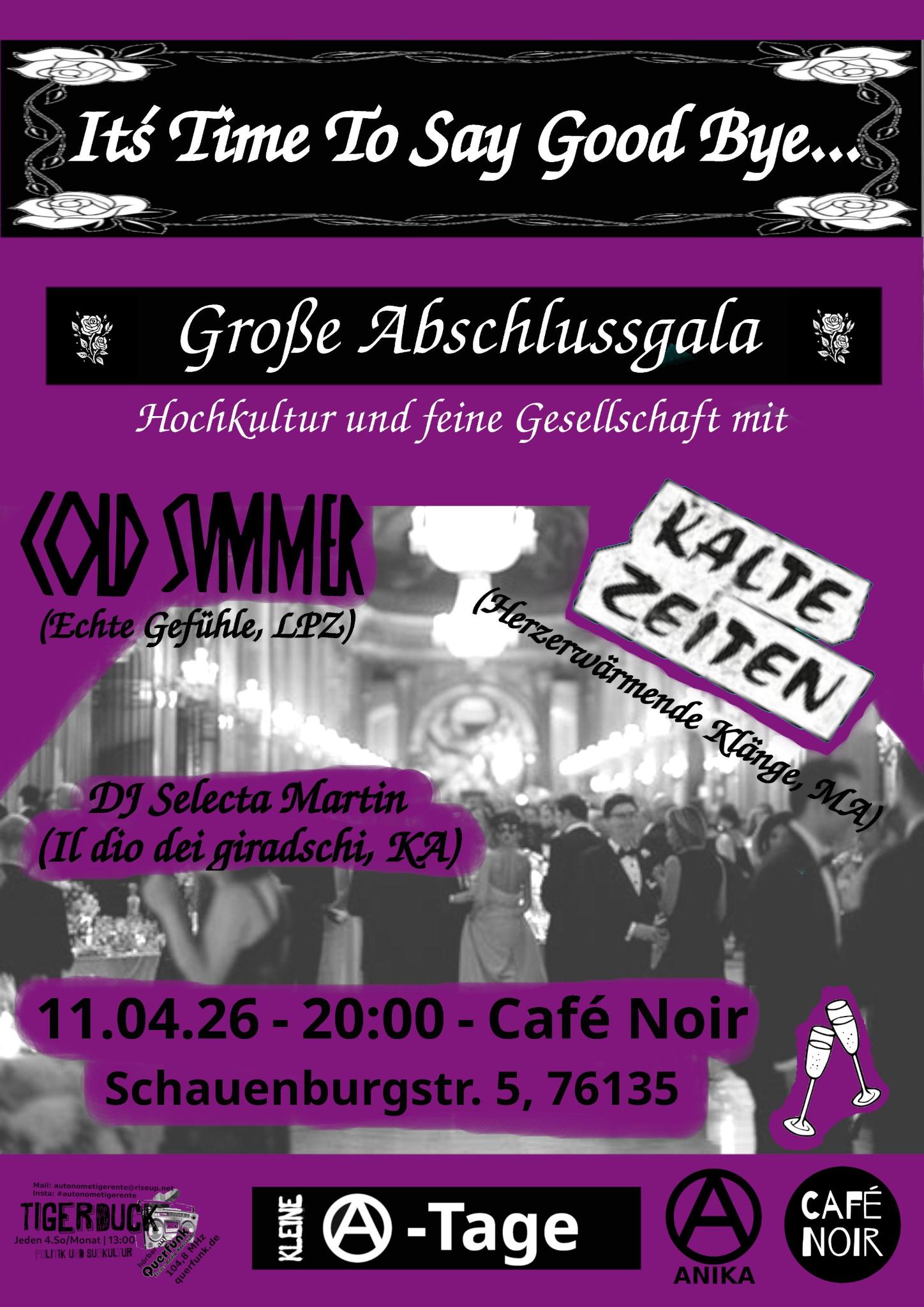 It's time to say good bye, Abschiedsparty Café Noir mit: Cold Summer, Kalte Zeiten, DJ Selecta Martin