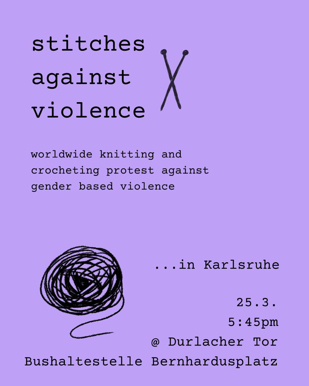 Am Mittwoch, den 25.03. möchten wir uns erneut an der weltweiten Strick- und Häkelaktion "stitches against violence" beteiligen, um auf geschlechtsspezifische Gewalt aufmerksam zu machen.