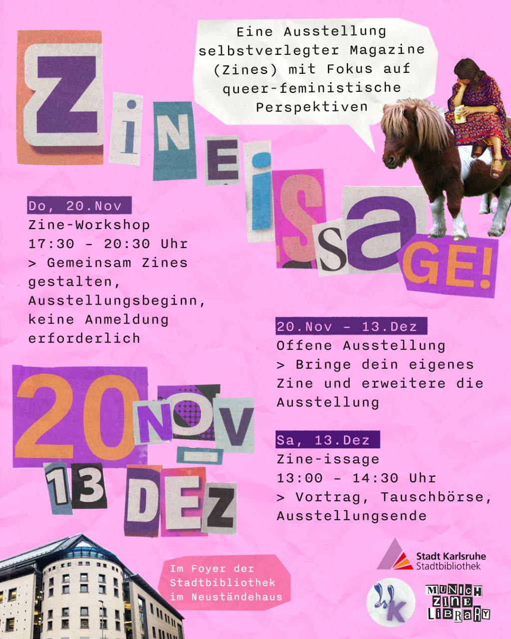 Gemeinsam mit der Stadtbibliothek Karlsruhe und der Munic Zine Library zeigen wir drei Wochen lang eine Auswahl an Zines mit queer-feministischen Perspektiven.