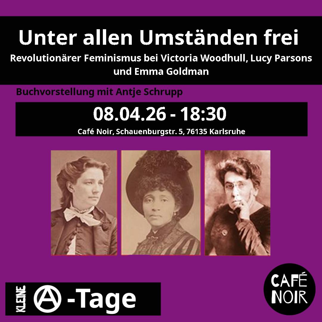Feminismus bedeutet mehr als Gleichberechtigung: Er strebt eine freiheitliche Gesellschaft an, in der niemand unterdrückt wird. Davon waren diese drei Revolutionär-innen überzeugt: Victoria Woodhull (1838-1927), erste US-Präsidentschaftskandidatin, Lucy Parsons (1851-1942), militante Aktivistin und Gewerkschafterin, und Emma Goldman (1869-1940), anarchistische Vordenkerin und Jüdin. Diese Frauen kämpften jenseits der bürgerlichen weißen Frauenbewegung kompromisslos für Freiheit, Liebe und Gleichheit.
