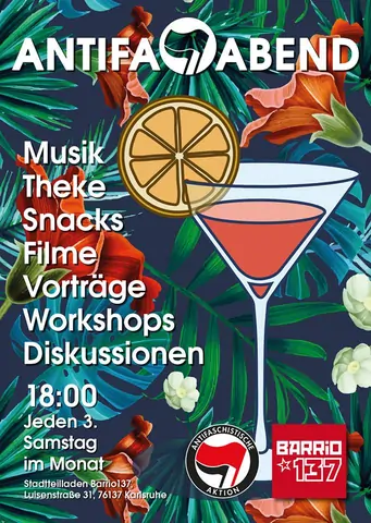Jeden 3. Samstag im Monat findet im Linken Zentrum Barrio137 die Antifa-Kneipe statt.