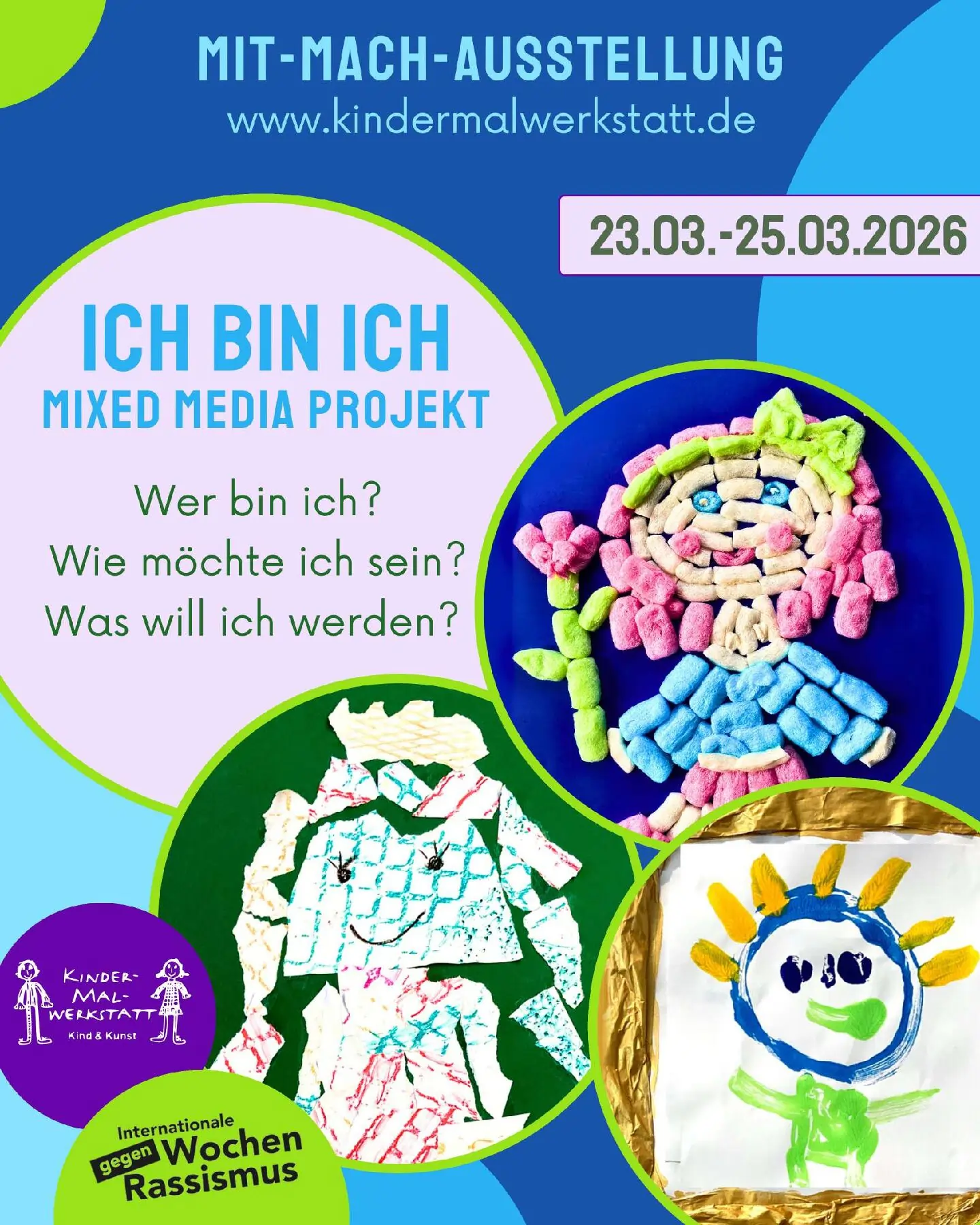 In der Mit-Mach-Ausstellung „ICH bin ICH“ nehmen eure Wünsche und Träume Gestalt an: zeigt euch in poppigen Playmaisgesichtern, gestaltet Frottage-Collage-Porträts aus lustigen Schnappschüssen oder malt Spiegelporträts zum Abklatschen. Erlebt mit uns die bunte Vielfalt der Karlsruher Kinder.