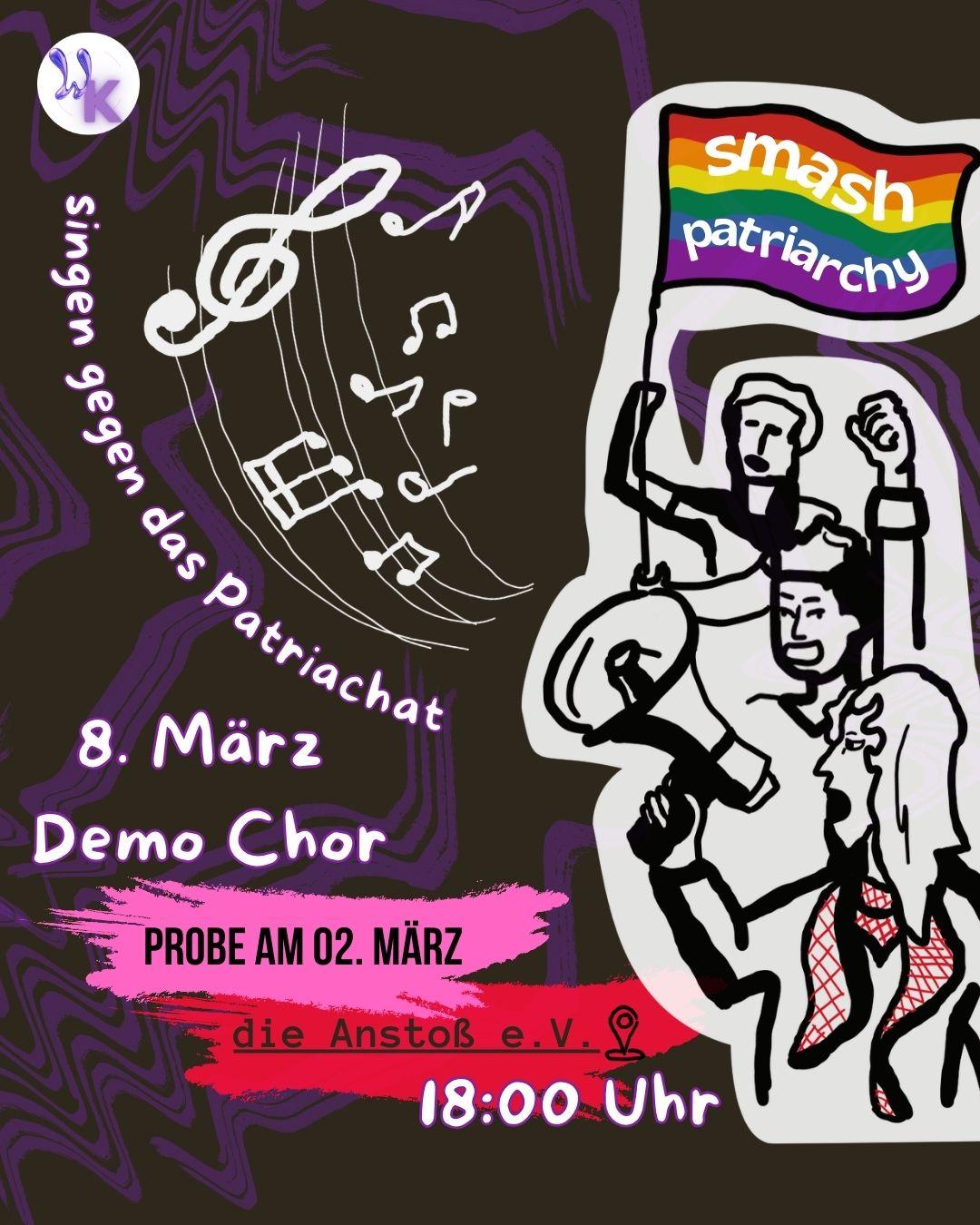 Dieses Jahr am 8.3., dem feministischen Kampftag wollen wir queerfeministische Perspektiven laut singend auf die Straße bringen. Wir haben ein paar Lieder zusammengesucht und andere Lieder umgedichtet und wollen diese am 2.3. ab 18:00 einproben. Komm dazu und bring friends mit, das wird spaßig und kraftvoll!✊🎶