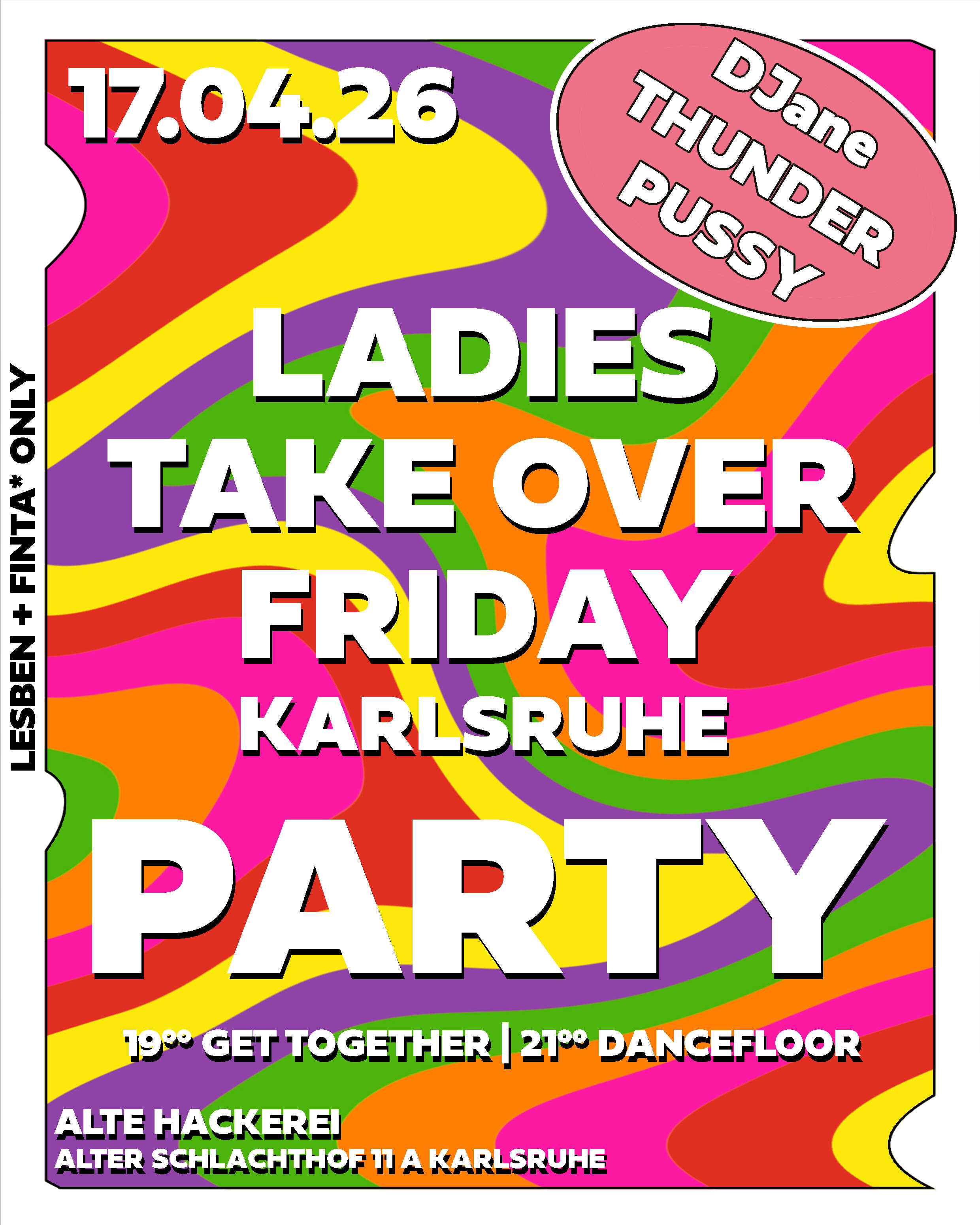 Was ist denn eigentlich Ladies TakeOver Friday Karlsruhe? Einmal im Monat wird von Lesben & ihren Freundinnen eine Location zu einer Lesben-Location gemacht!
